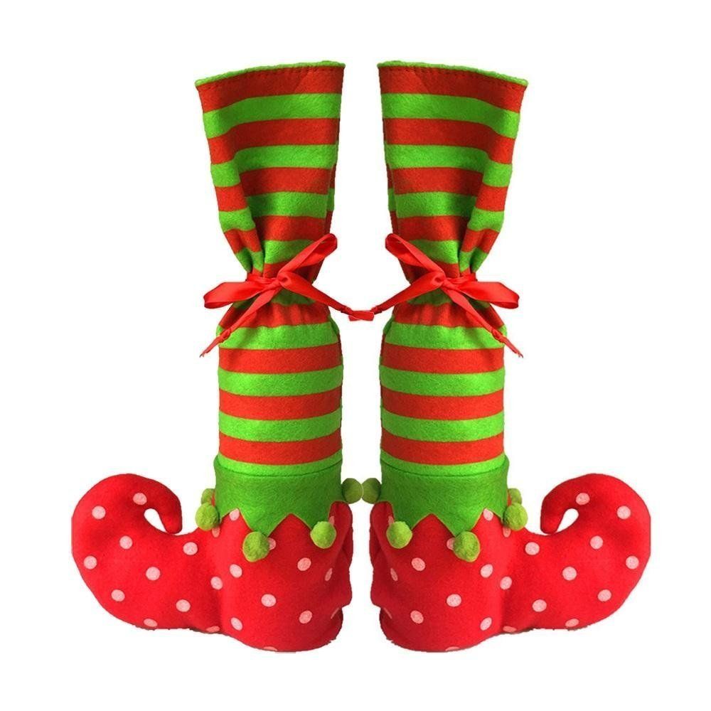 - Set includes 4pcs placemats, 10pcs mini Snowflake Socks, 2pcs Elf Table Leg Covers, 4 Suits Christmas Cutlery Holders, 1pc Christmas Gift Bag