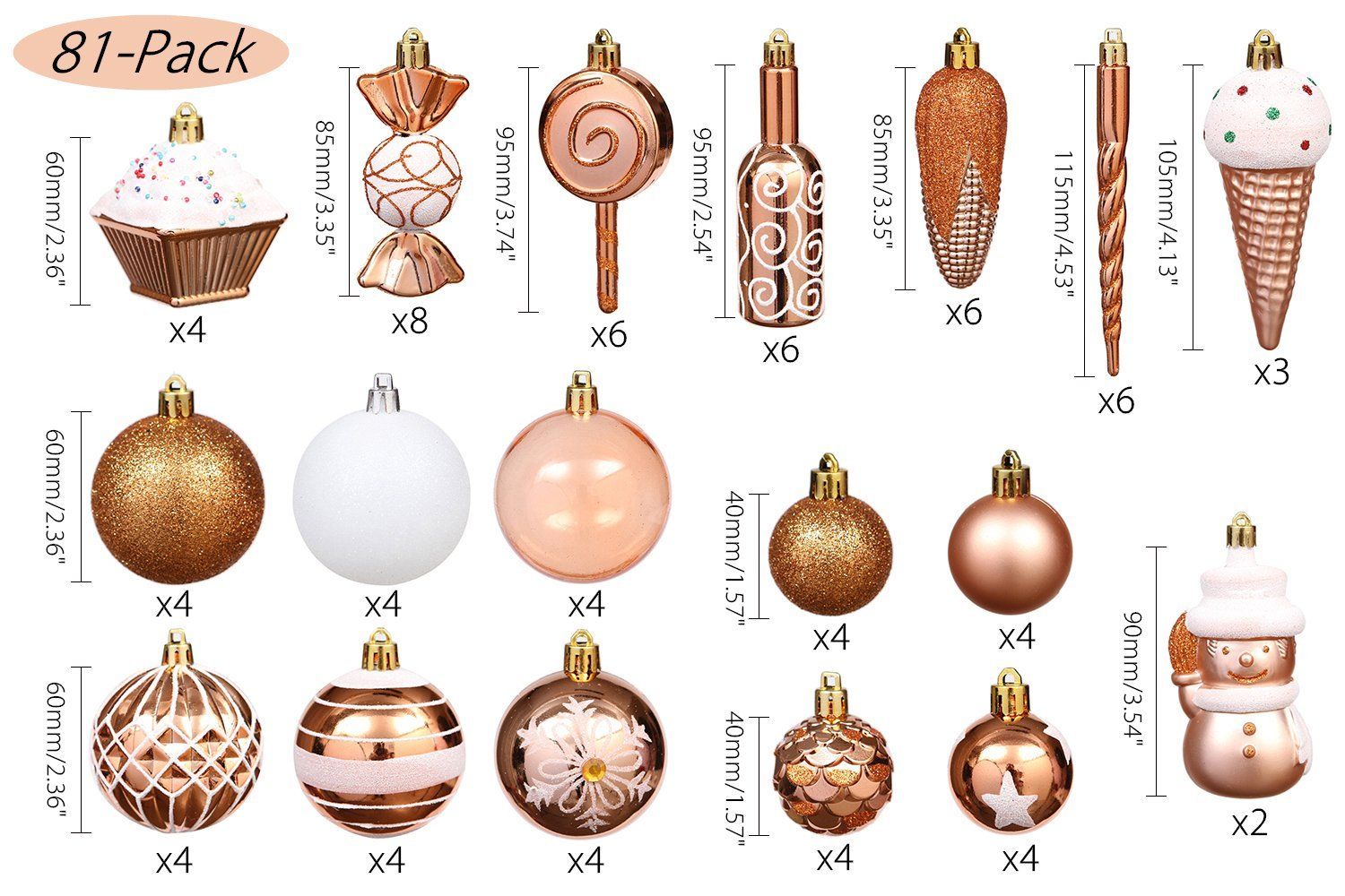 - 81-PACK CHRISTMAS ORNAMENTS – 81 pieces of Christmas ornaments in a variety of shapes and designs. Hand-held reusable plastic gift box included. Great as a perfect gift or just for self-use.